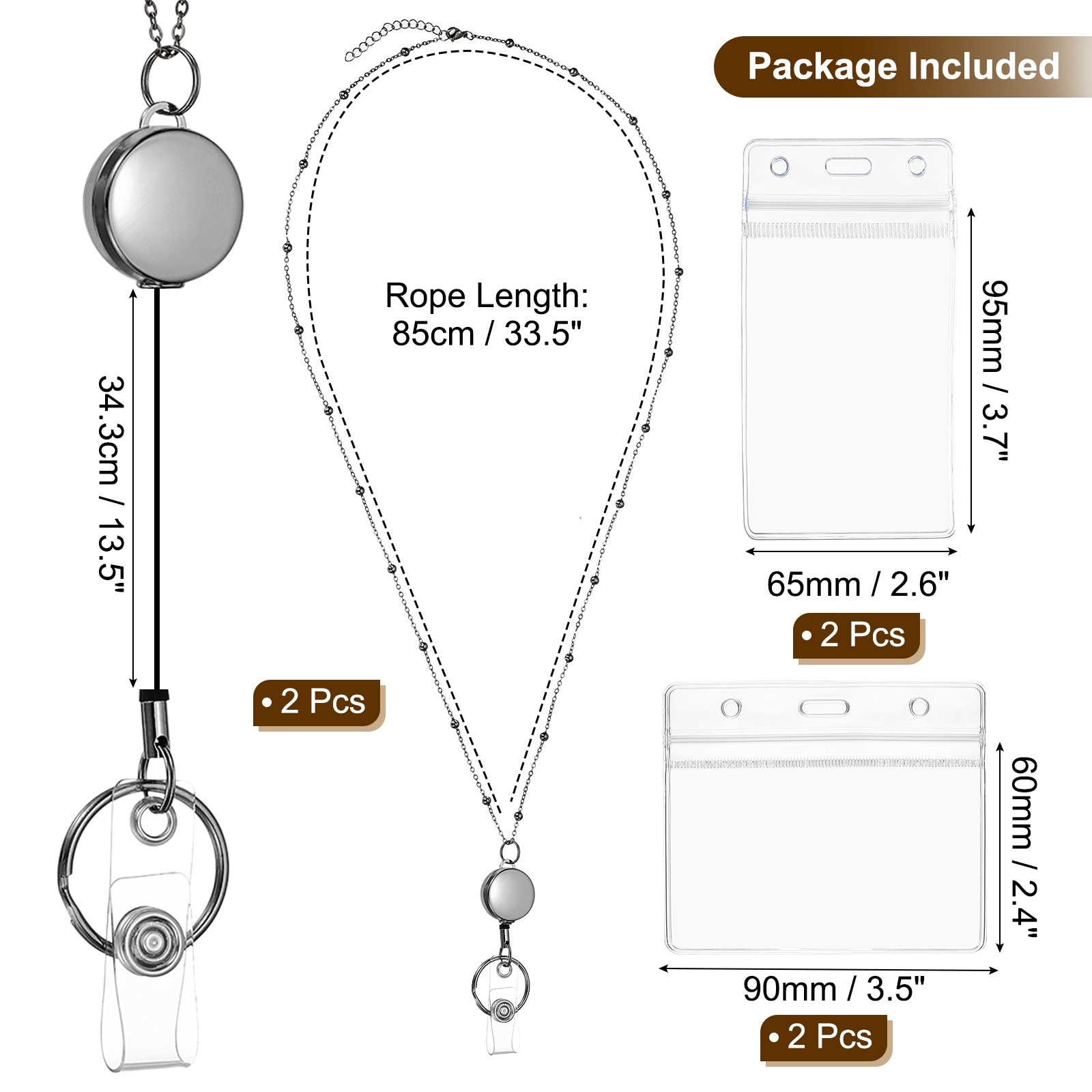 Badge Necklace Lanyard with ID Holder, Stainless Steel Retractable Square Badge Reel Lanyard Clip Chain with ID Holder for Woman