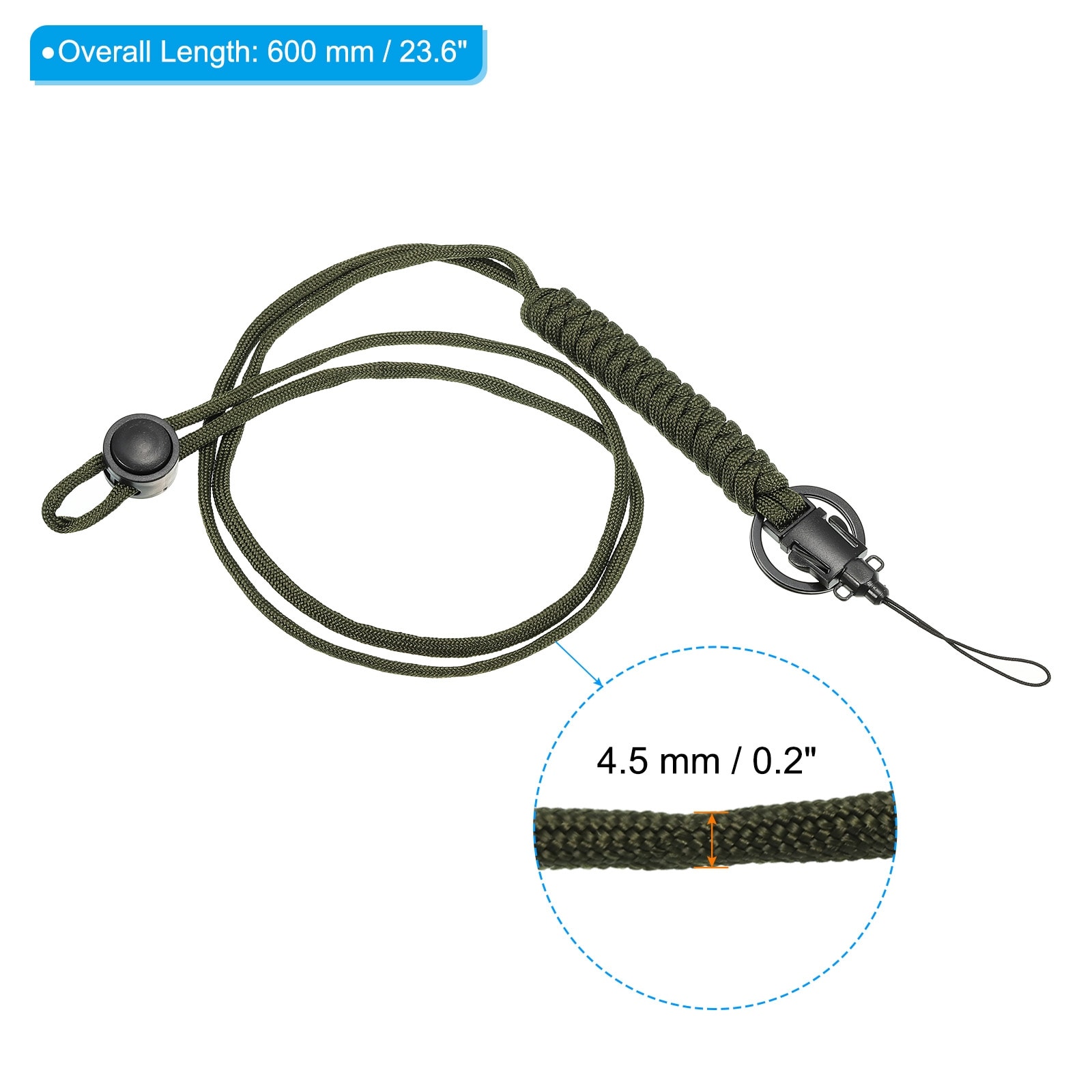 Paracord Lanyard, Braided Lanyard Necklace Keychain Adjustable Badge Lanyard, for Keys ID Card Badge Holder - Green - 600mm