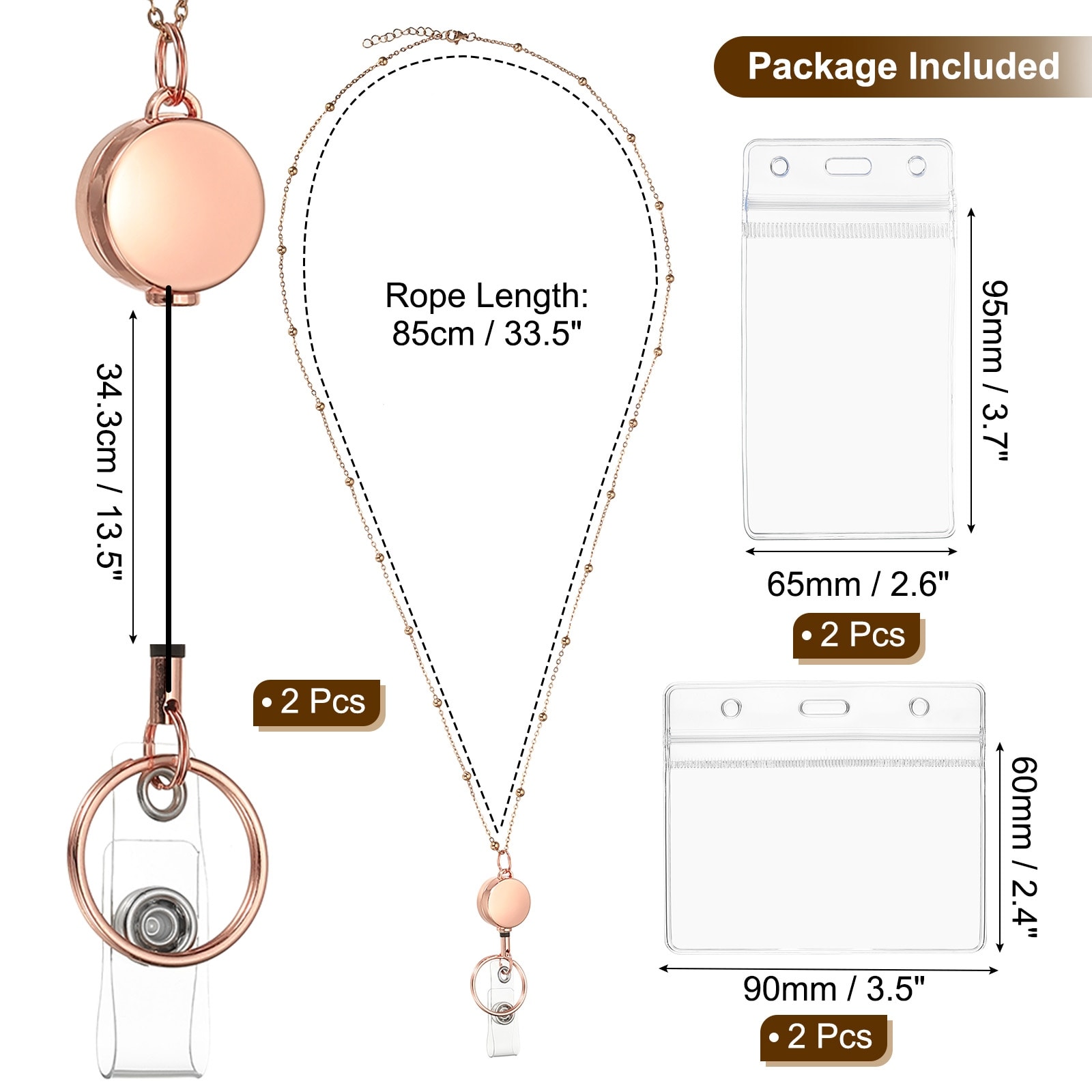 Badge Necklace Lanyard with ID Holder, Stainless Steel Retractable Square Badge Reel Lanyard Clip Chain with ID Holder for Woman