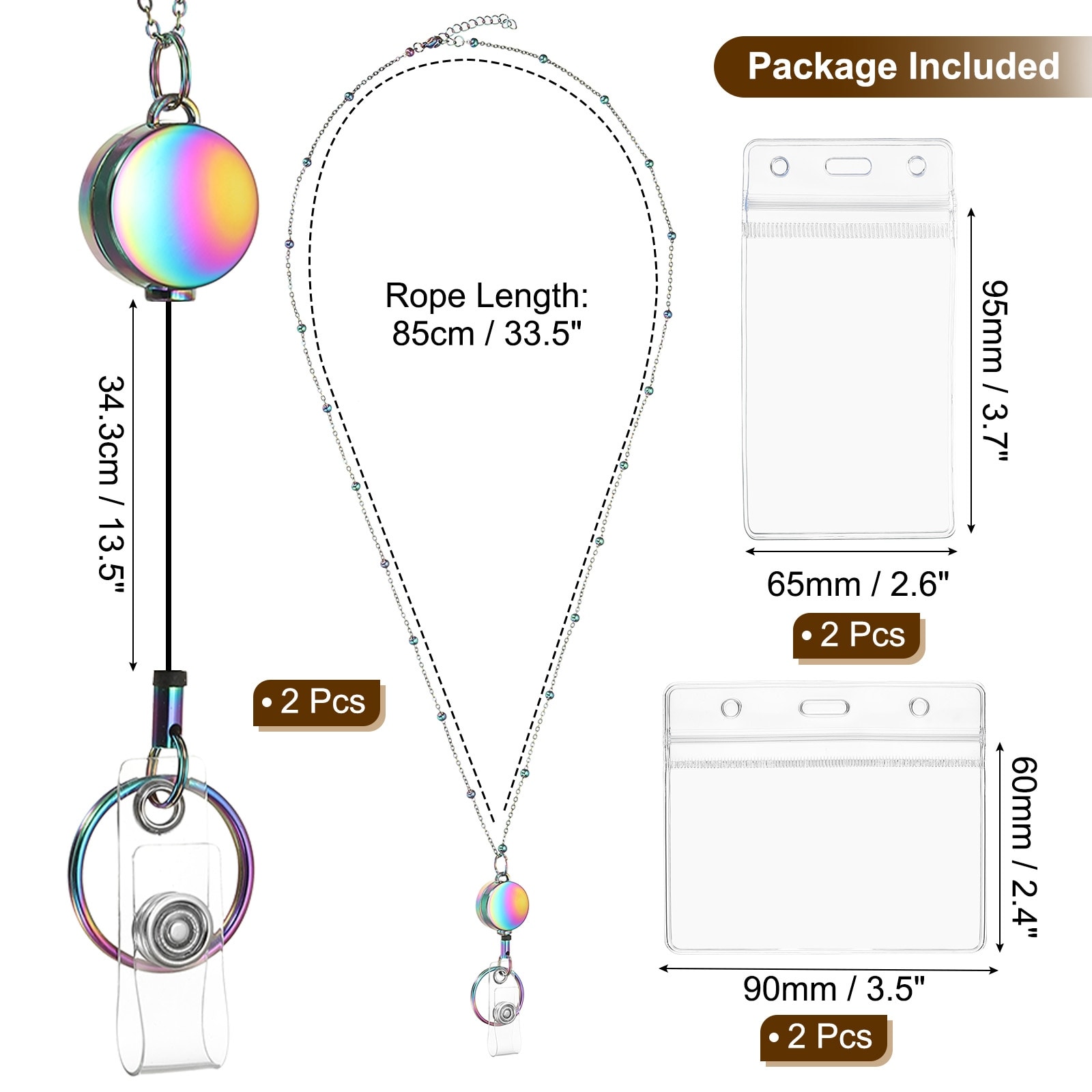 Badge Necklace Lanyard with ID Holder, Stainless Steel Retractable Square Badge Reel Lanyard Clip Chain with ID Holder for Woman