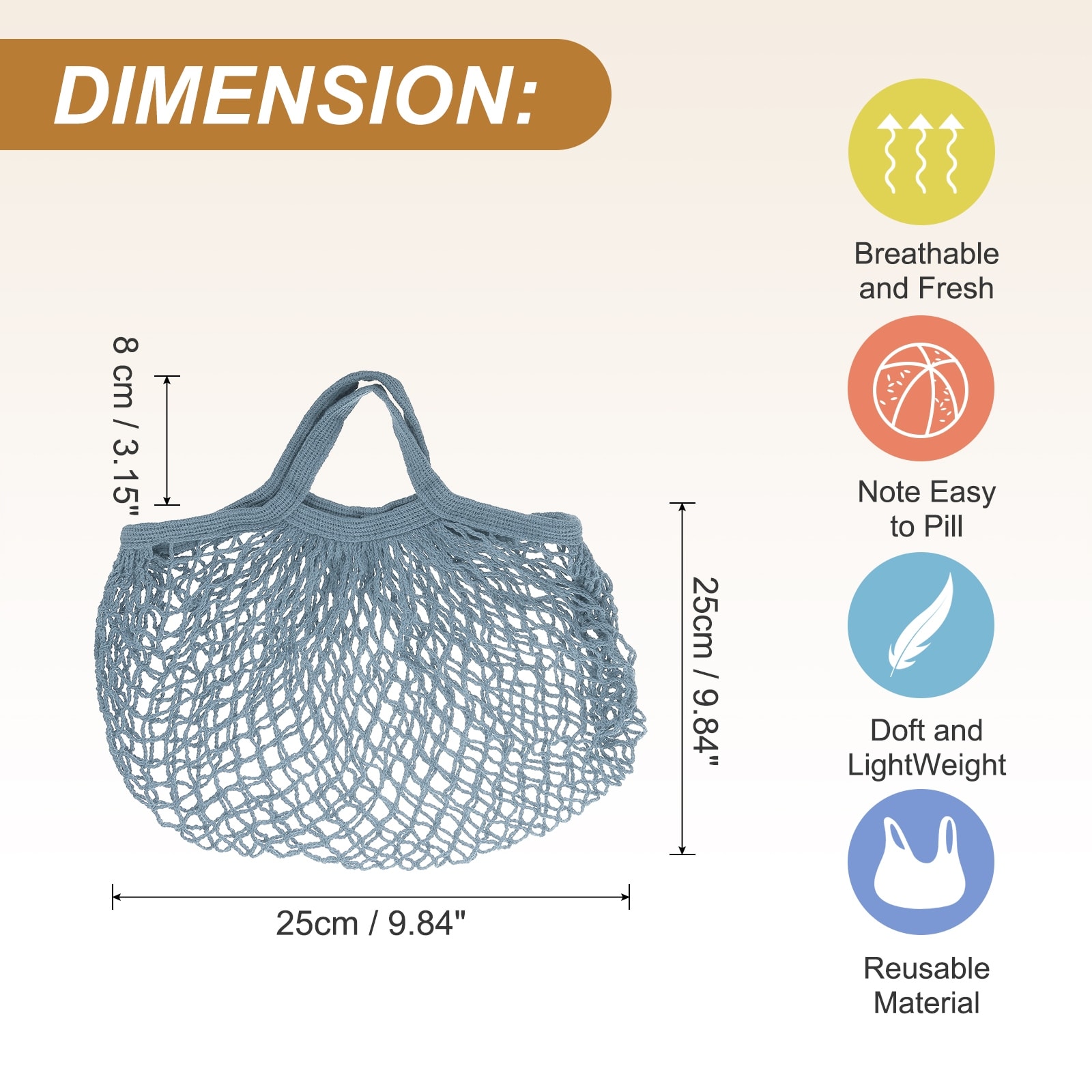 Reusable Mesh Produce Storage Bags Washable Net Portable Fruit and Vegetable Bag Cotton String with Short Handle