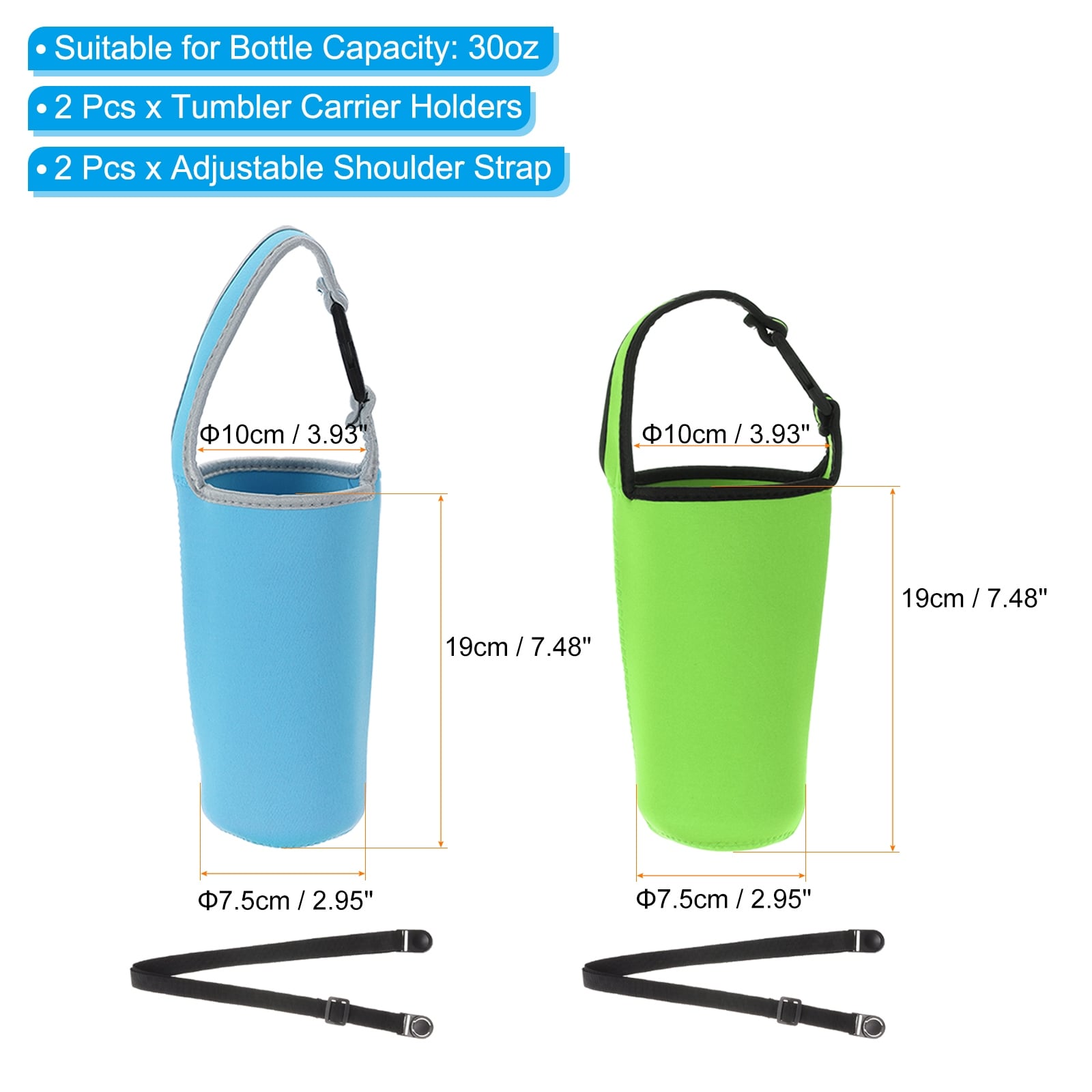 Tumbler Carrier Holders with Shoulder Strap Set, Reusable Neoprene Insulated Mug Water Bottle Protector - 30oz