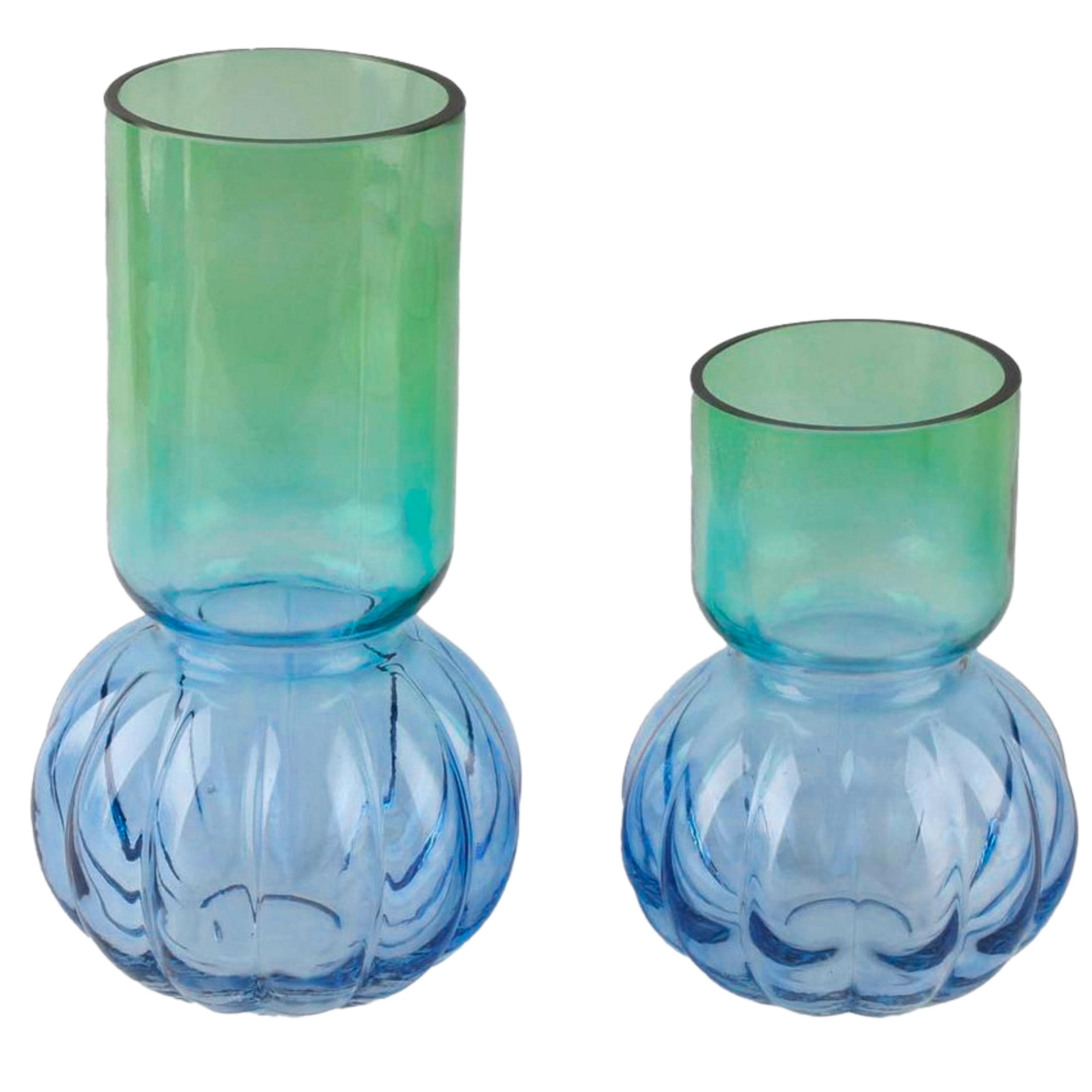 Two-Tone Green and Blue Set of 2 Bubble Shaped Modern Glass Vases