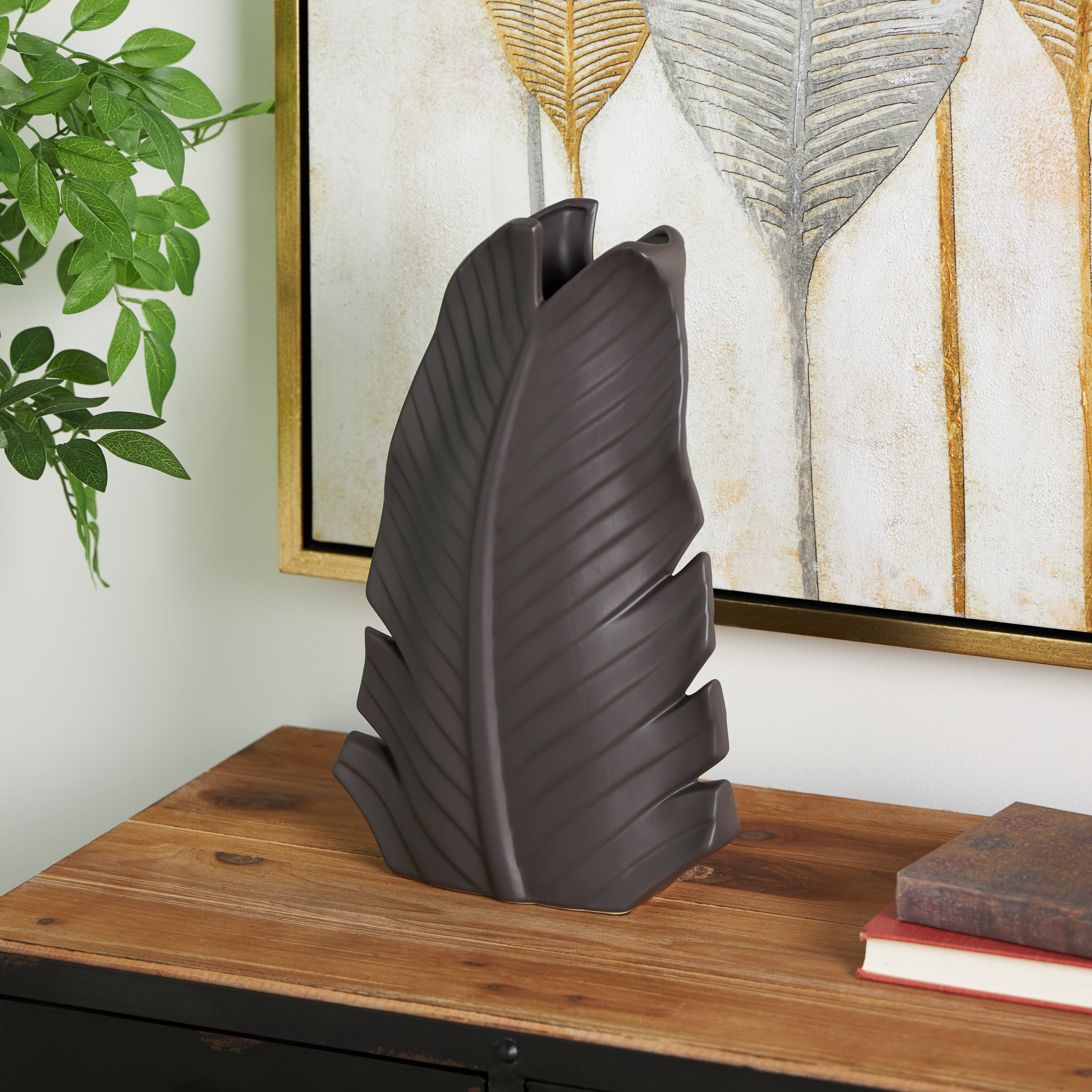 White or Black Ceramic Curved Leaf Palm Tree Decorative Vase