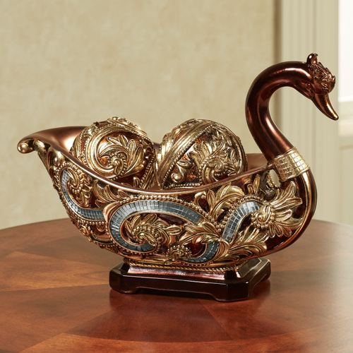 Daniella Swan Decorative Bowl with Orbs Mahogany Set of Three, Set of Three, Mahogany