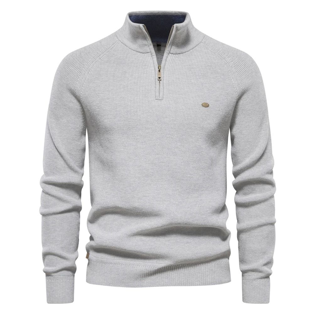 Mens Cotton Zip Cardigan High Collar Knitted Sweater m navy Blue