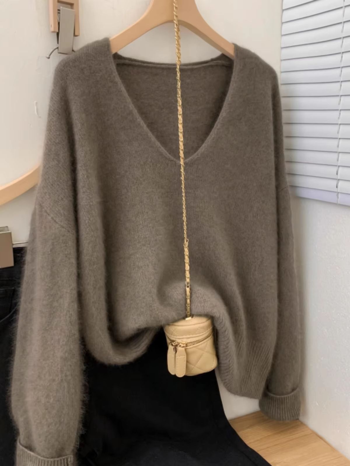 Yangqi Soft Waxy 100% Pure Cashmere V Neck Sweater Loose Fit Knit For Autumn & Winter pink s(us 4)