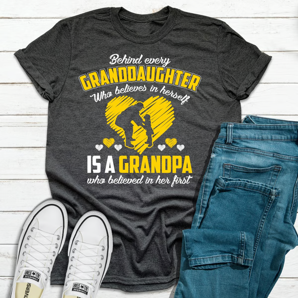 Behind Every Granddaughter Who Believes In Herself Is A Grandpa Dark Heather XL