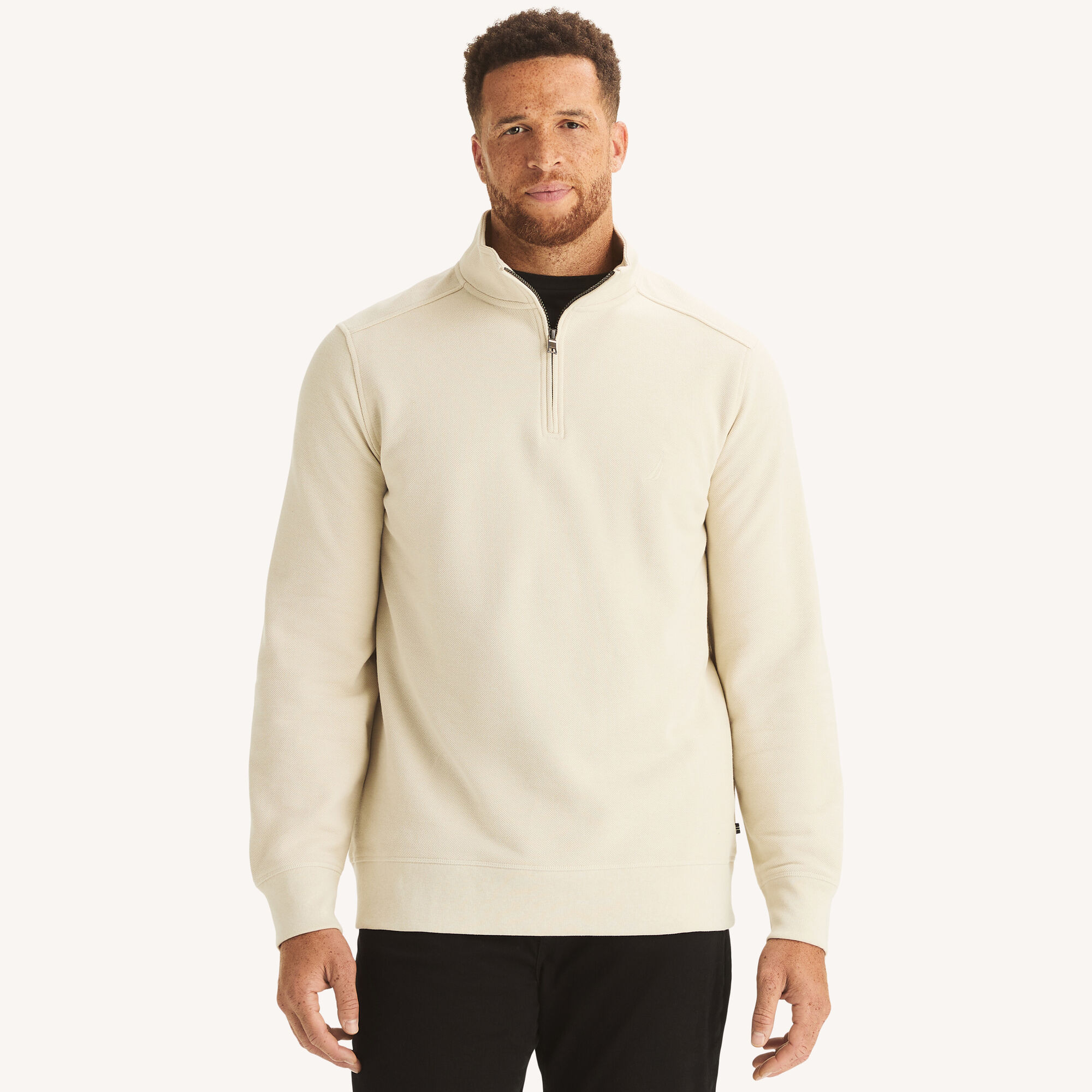 Nautica Men's Quarter-Zip Fleece Sweatshirt 037 (Stone Grey Heather), M