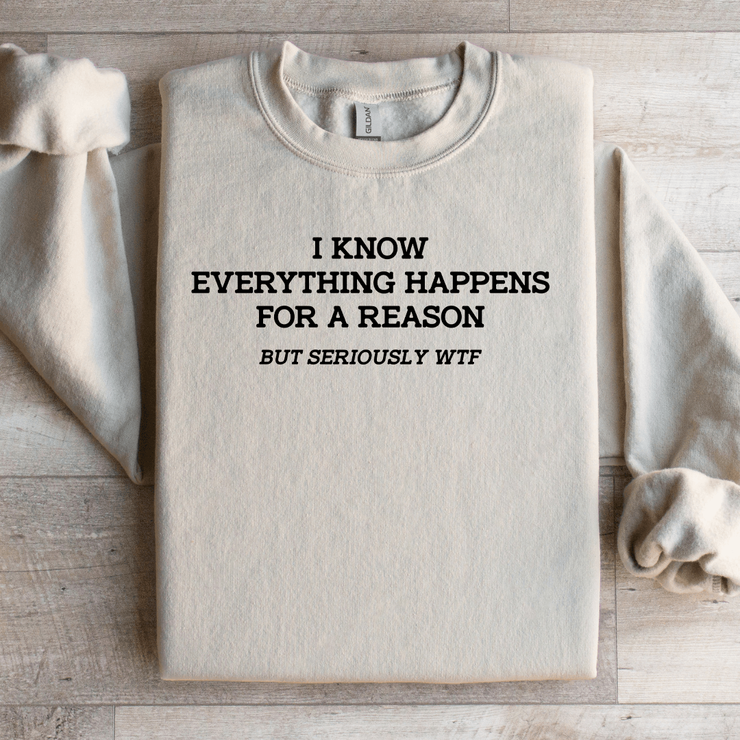 I Know Everything Happens For A Reason Sweatshirt XL Sand