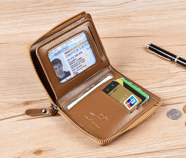 Mens Leather Wallet With RFID Protection And Zipper Card Holder black