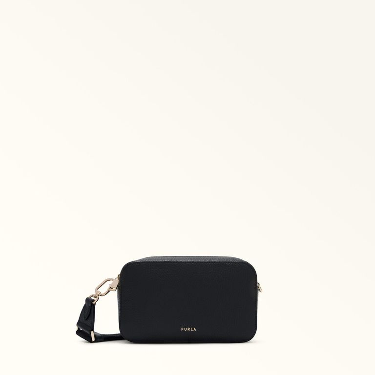 Net Crossbody Mini Nero Grained Calf Leather + Logo Ribbon Fabric - Black - Furla Totes