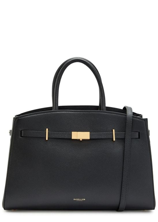 The Hudson Midi Grained Leather Top Handle Bag - Black - DeMellier London Top Handle Bags