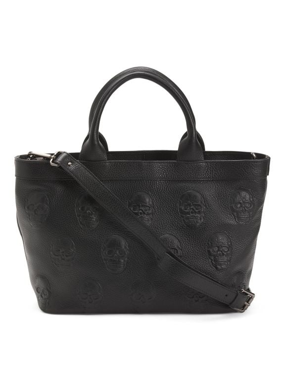 Leather Multi Embossed Skulls Satchel - Black - Tj Maxx Satchels