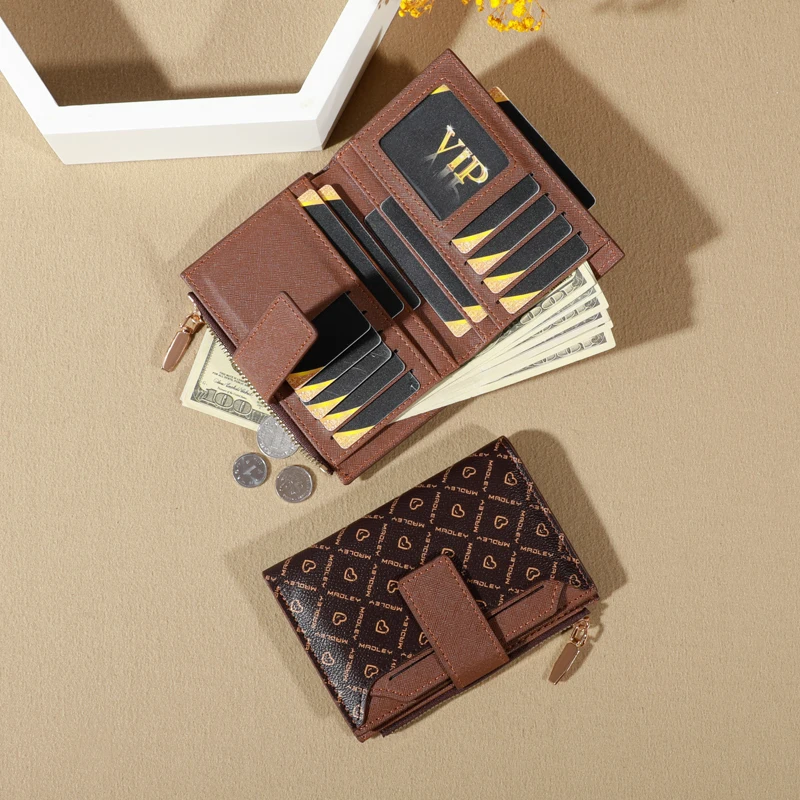 Vintage Solid Color Short Wallet Portable Bifold Coin Purse & Womens Credit Card Holder coffee