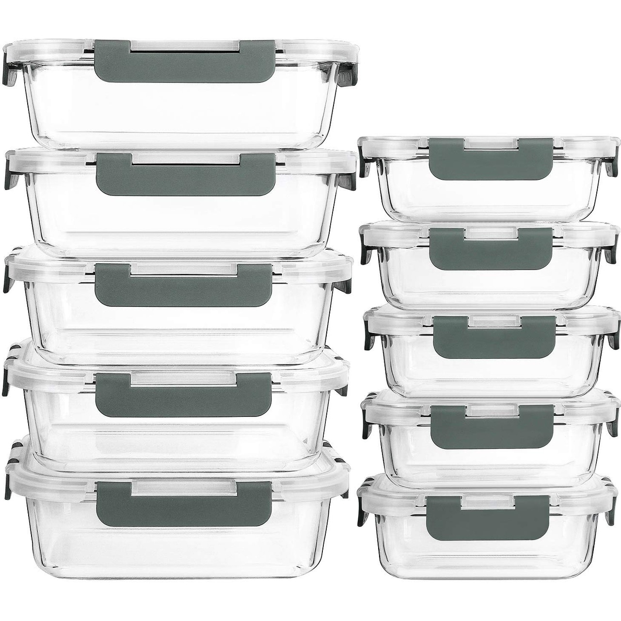 Glass Containers for Food Storage with Lids, [10-Pack] Meal Prep Containers for Kitchen, Home Use, BPA Free