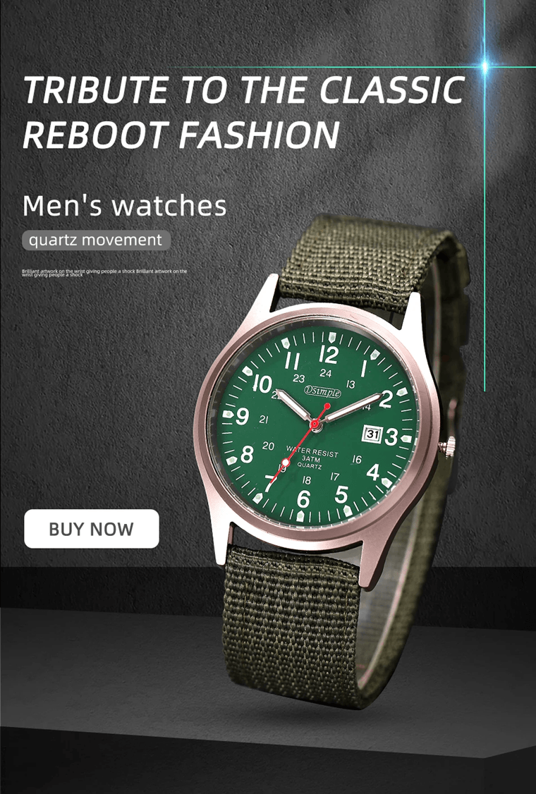 Mens Military Quartz Watch Luminous Nylon Strap Calendar Style brown
