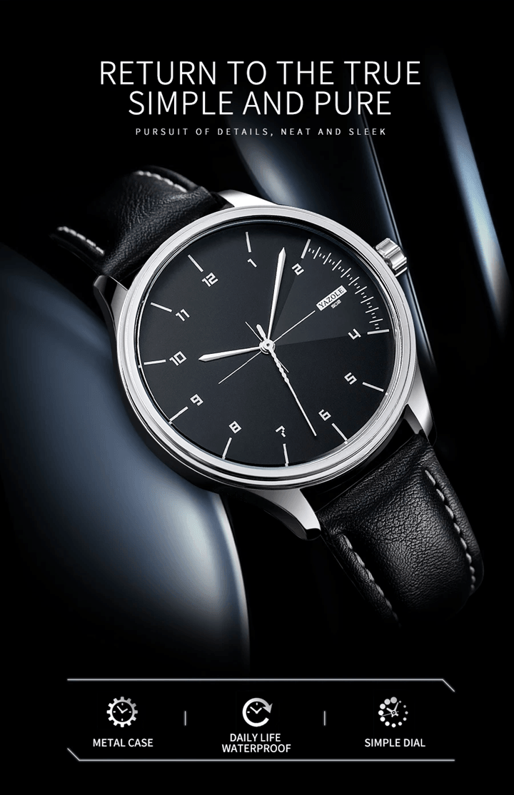 YAZOLE Mens Leather Quartz Watch Casual Sport Style black Black