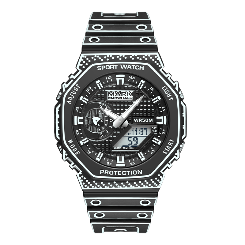Men Dual Time Electronic Watch, 5 Alarm, Countdown Timer, Waterproof With Date, Week, Daylight Saving black Transparent