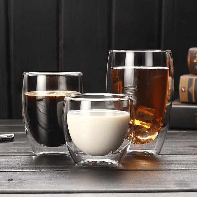 Double Wall Insulated Glass Cups Clear Handmade Drinkware For Coffee, Tea, And Whiskey 350ml With Handle