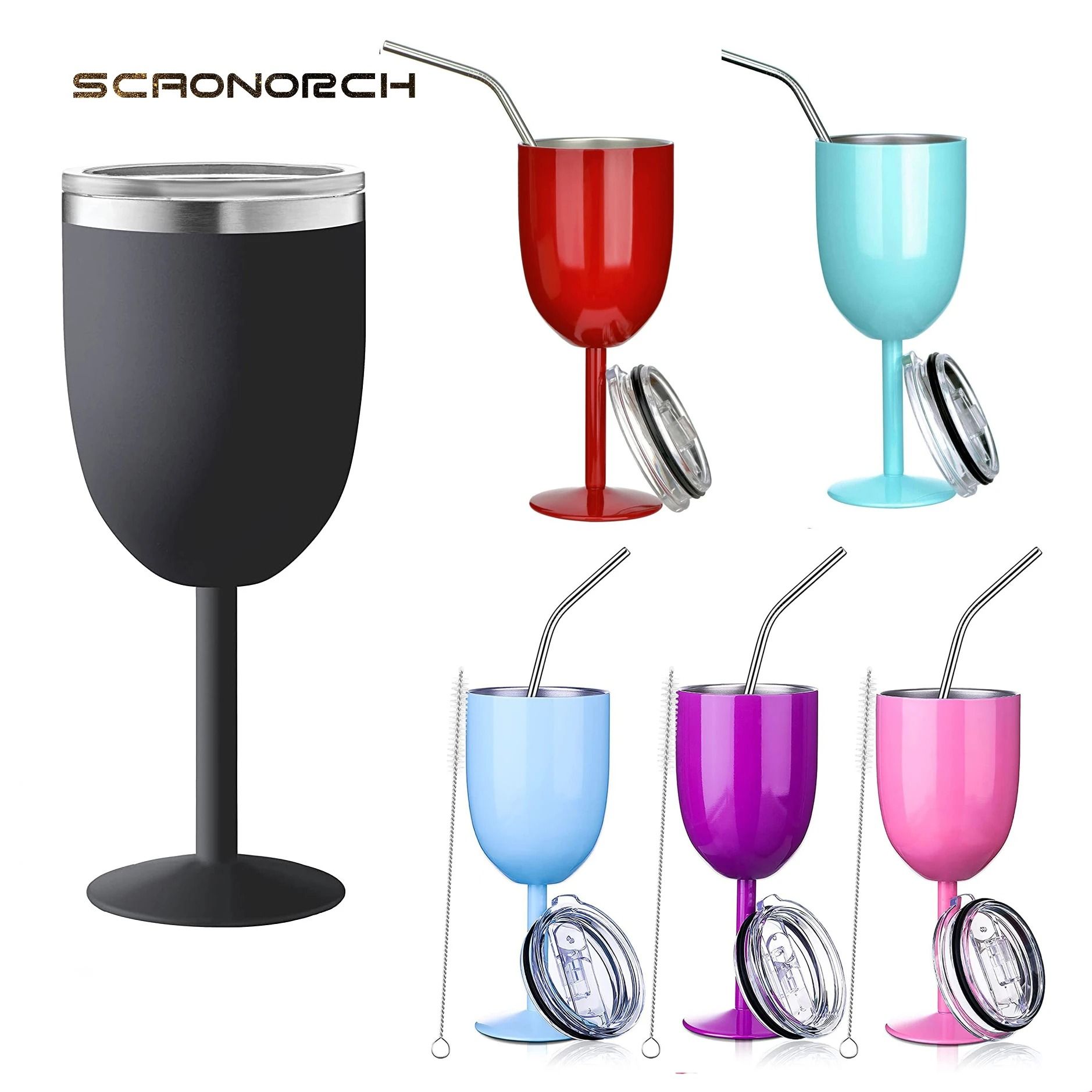 300ML Stainless Steel Double Wall Goblet Wine Glass With Straw And Lid For Coffee Water Or Champagne rose