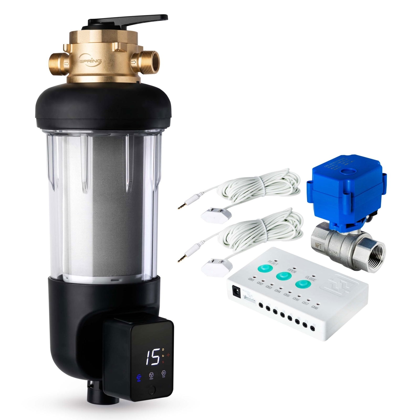 iSpring WSP50ARJ-BP Auto Flushing Spin-Down Sediment Water Filter with Bypass, w/ Auto Shut-Off Leak Detector Alarm System