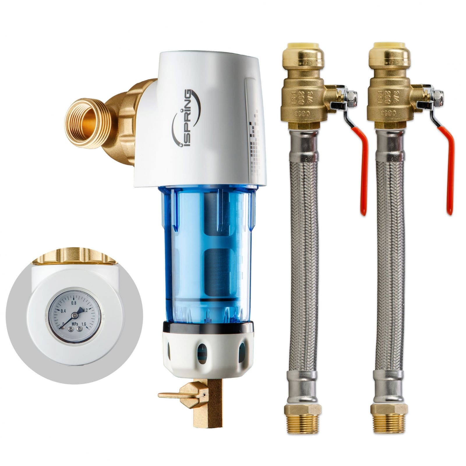 iSpring WSP50GR+AHPF12MNPT12X2 Reusable Spin Down Sediment Filter w/ Scraper