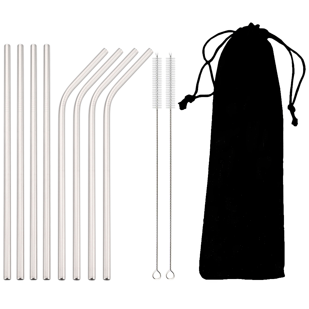 Colorful 304 Stainless Steel Metal Straws Set Reusable Drinking Straws With Brush & Cocktail Straw 11pcs Silver