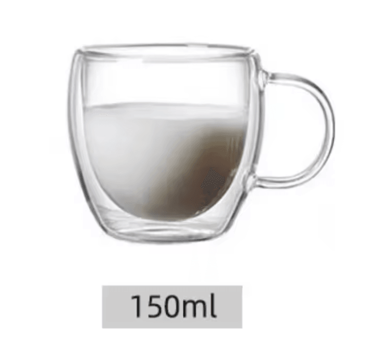 Double Wall Insulated Glass Cups Clear Handmade Drinkware For Coffee, Tea, And Whiskey 150ml With Handle
