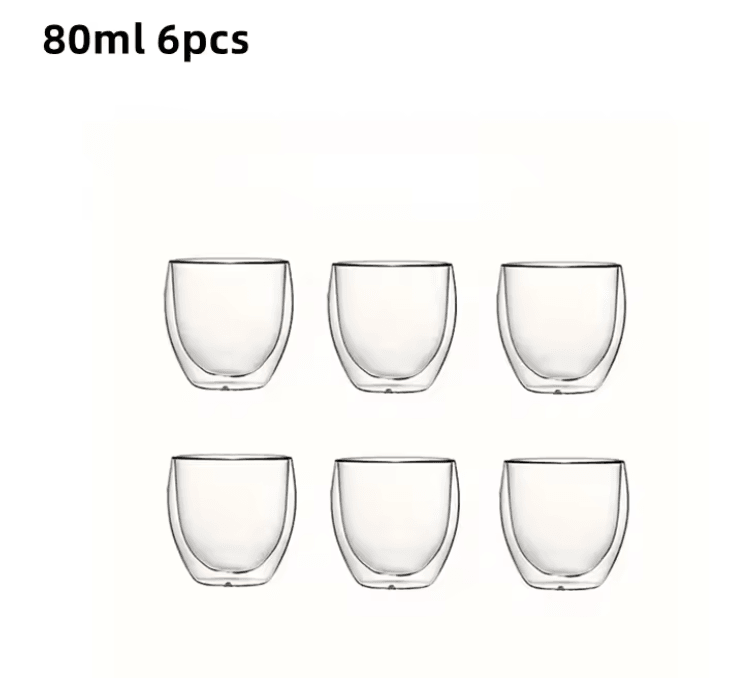 6 Piece Double Wall Insulated Glass Cup Set 80ml To 450ml Heat Resistant Borosilicate Glass Mugs For Coffee, Tea, And 80ml 6pcs