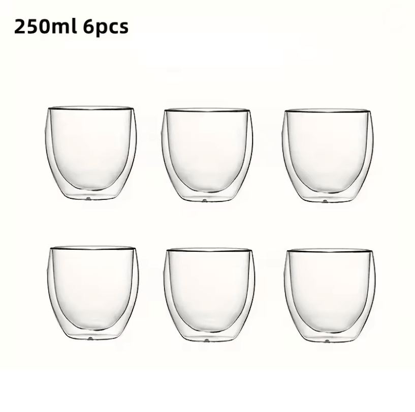 6 Piece Double Wall Insulated Glass Cup Set 80ml To 450ml Heat Resistant Borosilicate Glass Mugs For Coffee, Tea, And 250ml 6pcs