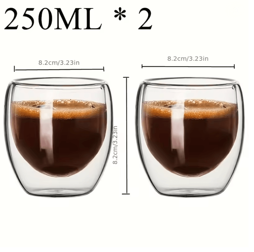 Double Wall Glass Cup Set Insulated Espresso And Whisky Mugs For Hot And Cold Drinks 2 Pcs 250ml