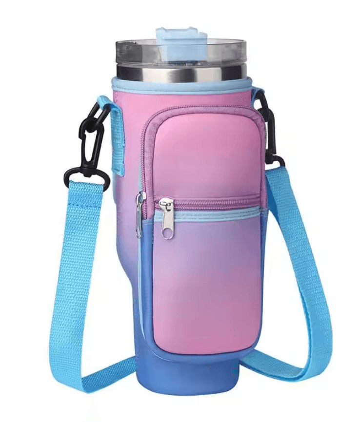 Water Bottle Carrier Bag With Adjustable Strap And Pocket For Stanley 40oz Tumbler purple Gradient