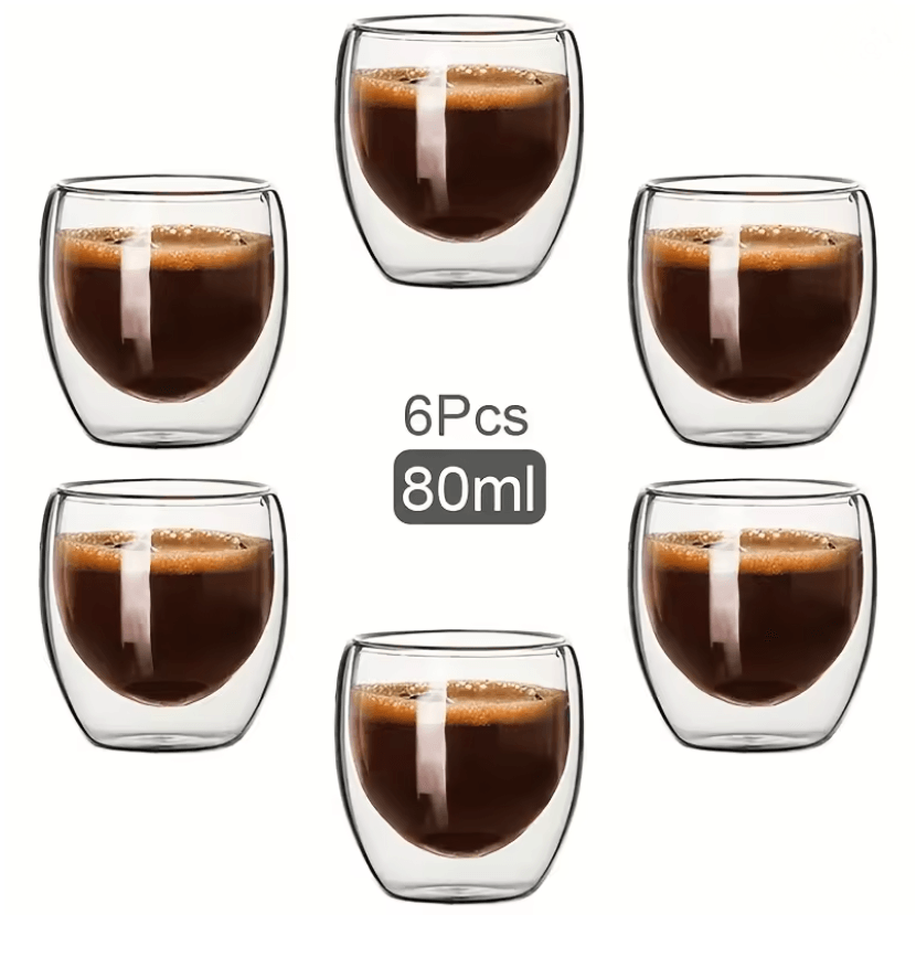 Double Wall Glass Cup Set Insulated Espresso And Whisky Mugs For Hot And Cold Drinks 6 Pcs 80ml