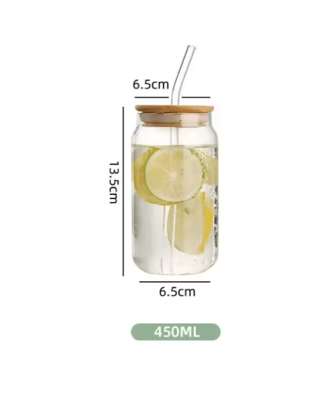 Glass Straw Cup With Wooden Lid Heat Resistant Transparent Tumbler For Hot And Cold Beverages 450ml