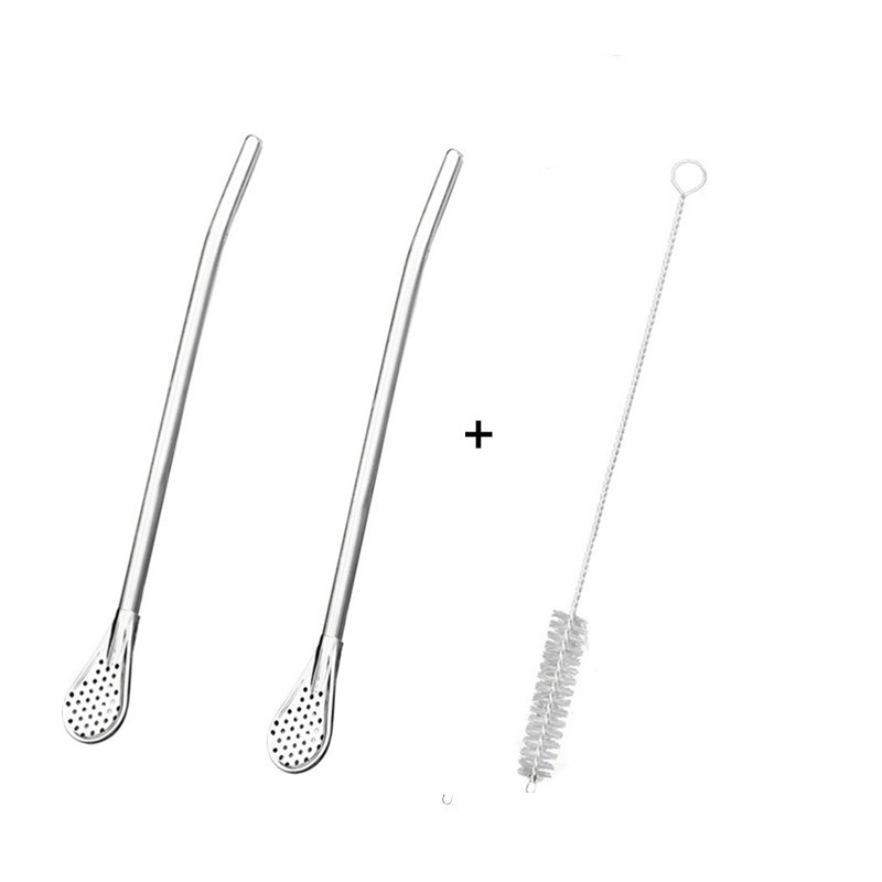 Detachable Stainless Steel Straws: Spoon Tea Filter, Reusable With Brush Drinkware Bar Party Accessories 2pcs