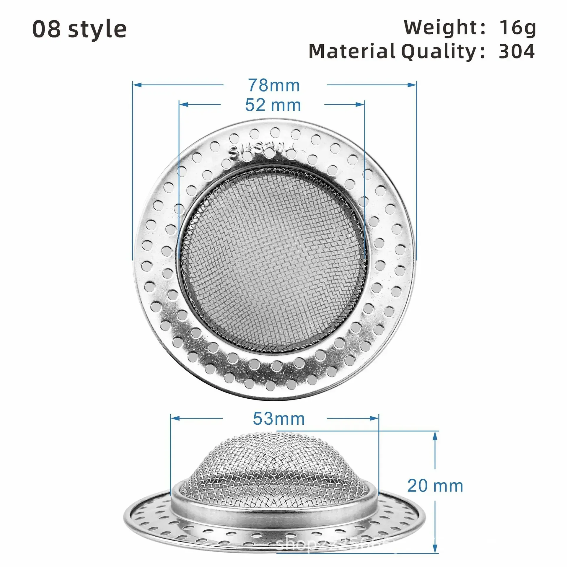 1PCS Kitchen Sink Filter Stainless Steel Mesh Sink Strainer Filter Bathroom Sink Strainer Drain Hole Filter Trap Waste 08 1pcs