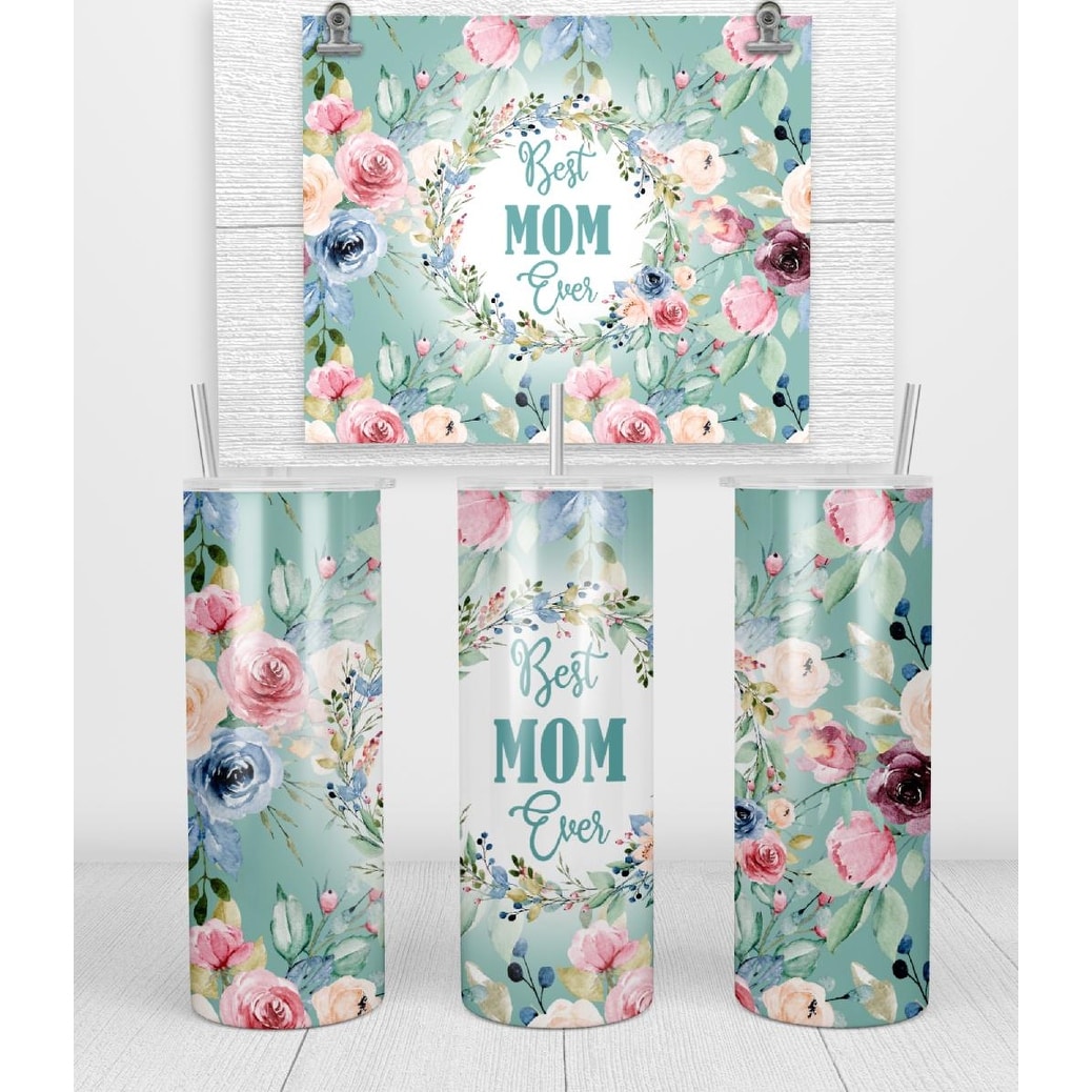 Best Mom Ever Beautiful Flowers 20 Oz Skinny Metal Tumbler w/Lid and Straw - Multi