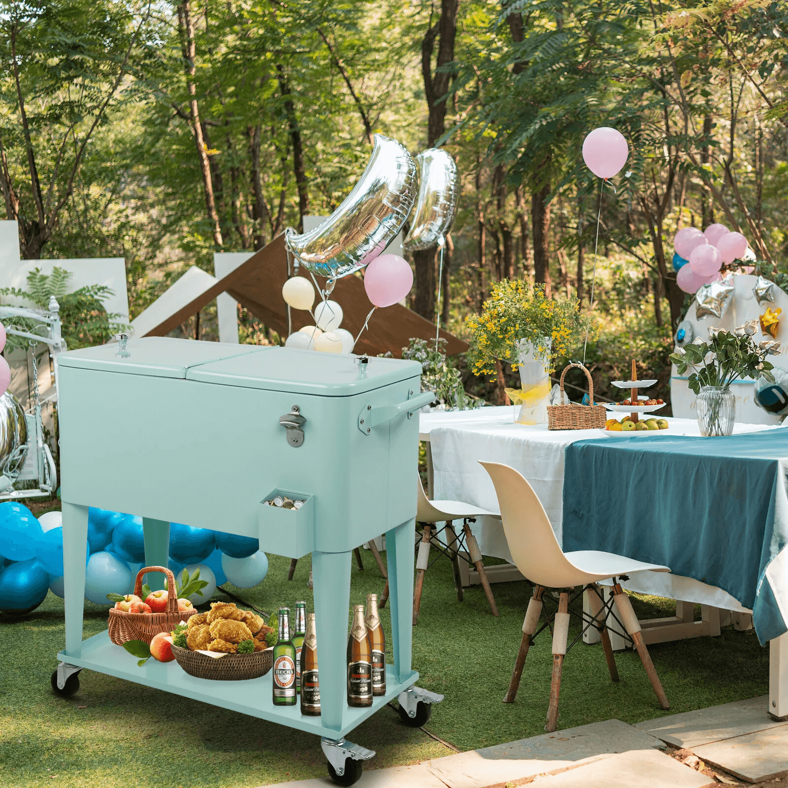 Portable Outdoor Quart Rolling Patio Steel Party Cooler Cart With Ice Chest And Wheels, Cold & Warm Retention Portable Outdoor Quart Rolling Patio Steel Party Cooler Cart With Ice Chest And Wheels, Cold & Warm Retention