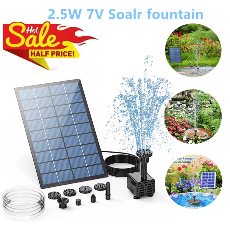 2.5W Solar Fountain Pump With Nozzles And Water Pipe For Bird Bath Pond And Garden Decor a 2.5w