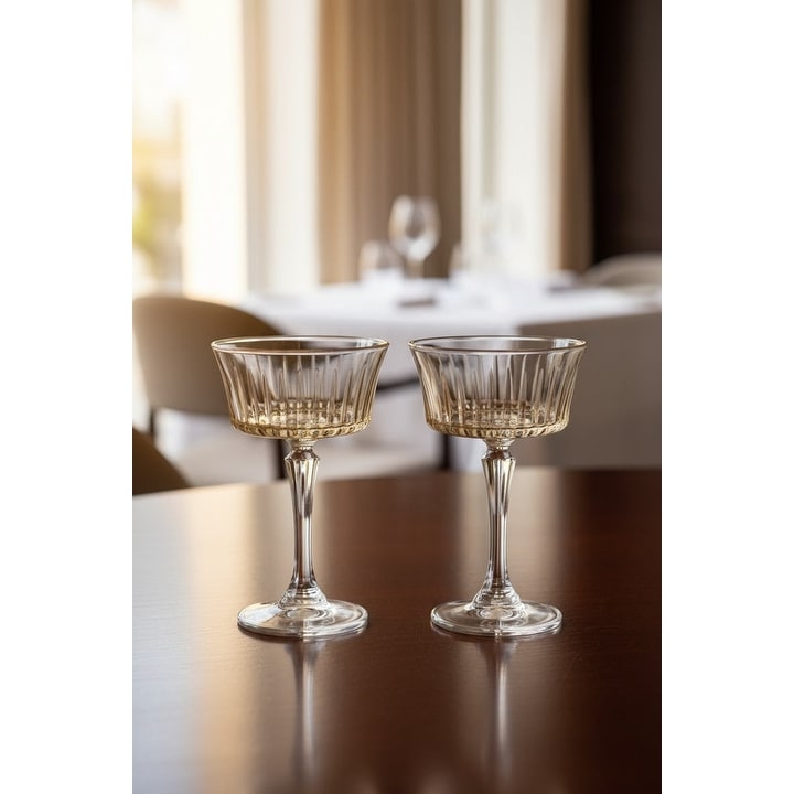 Set of 6 Timeless Champagne Glasses with Amber Shade on Bottom