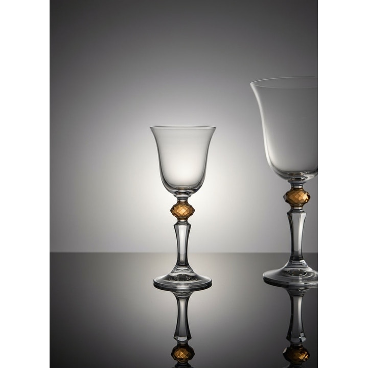 Set of 6 Liquor Glasses, with Amber Diamond on Stem