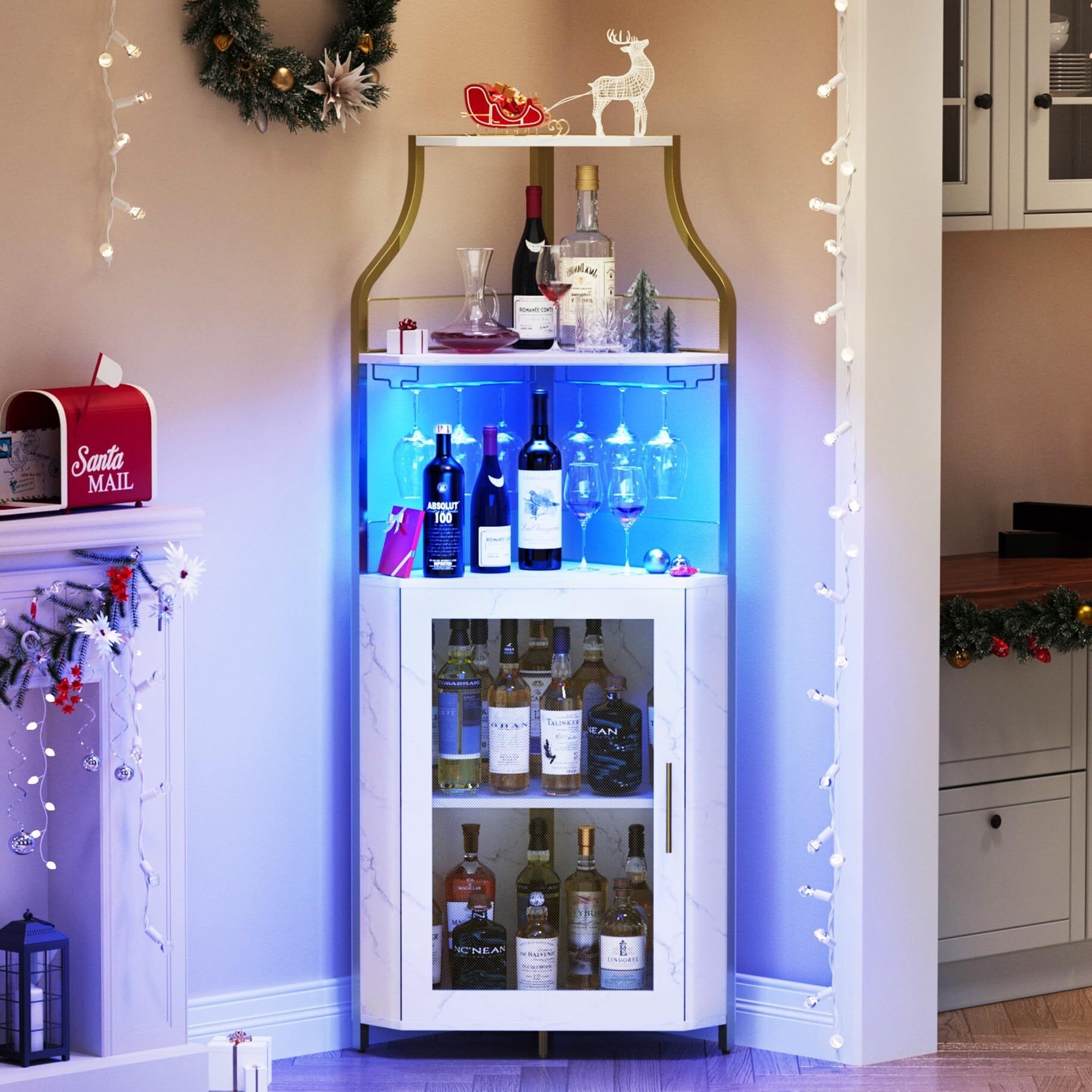 Corner Bar Cabinet with LED Lights,5-Tier Wine Cabinet
