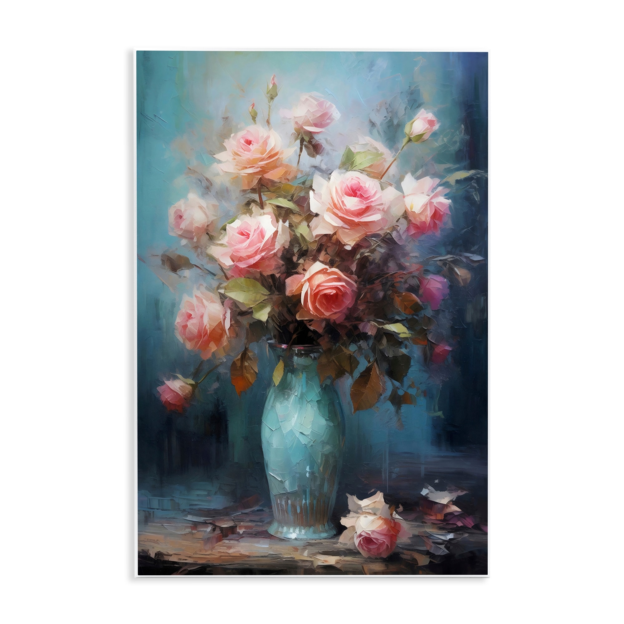 Stupell Blue Vase with Pink Roses Wall Plaque Art Design By LSR Creative Studio