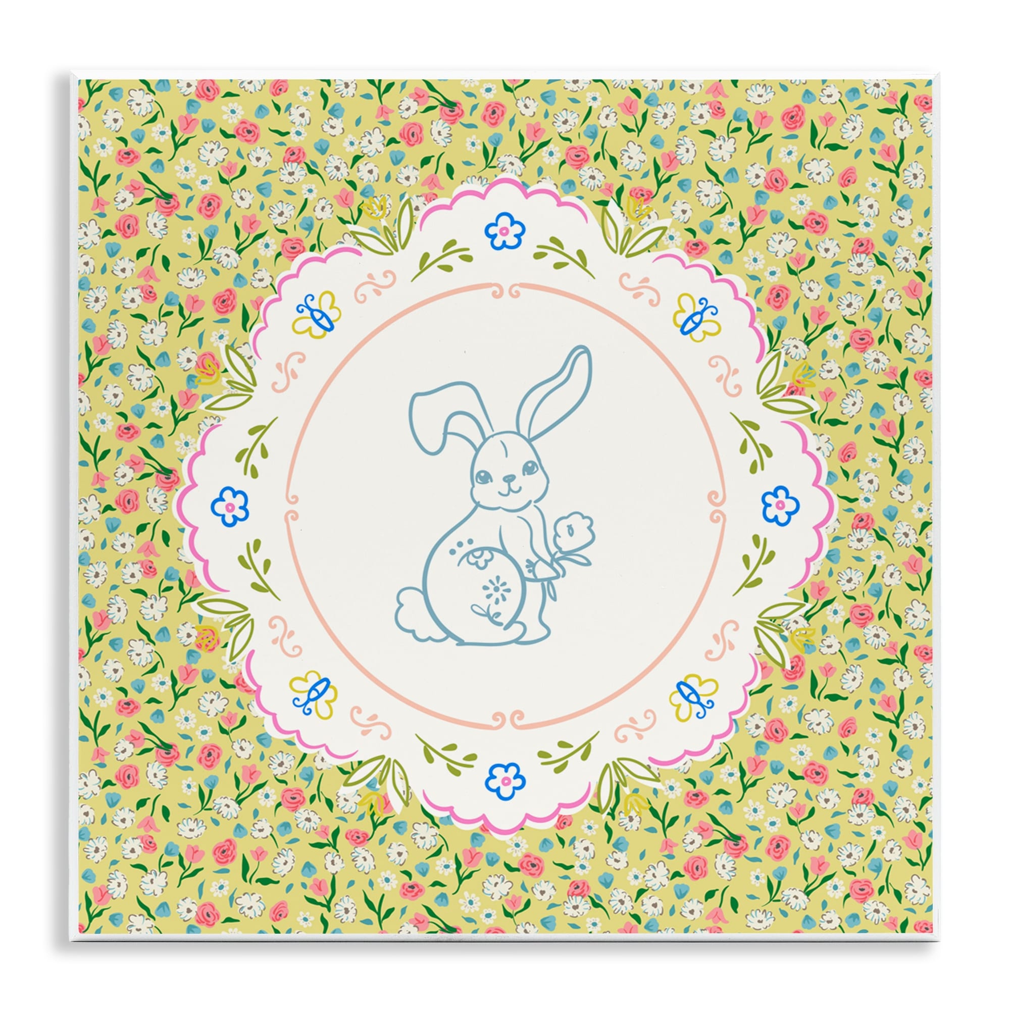 Stupell Floral Spring Bunny & Sprig Wall Plaque Design by Angela Steahling