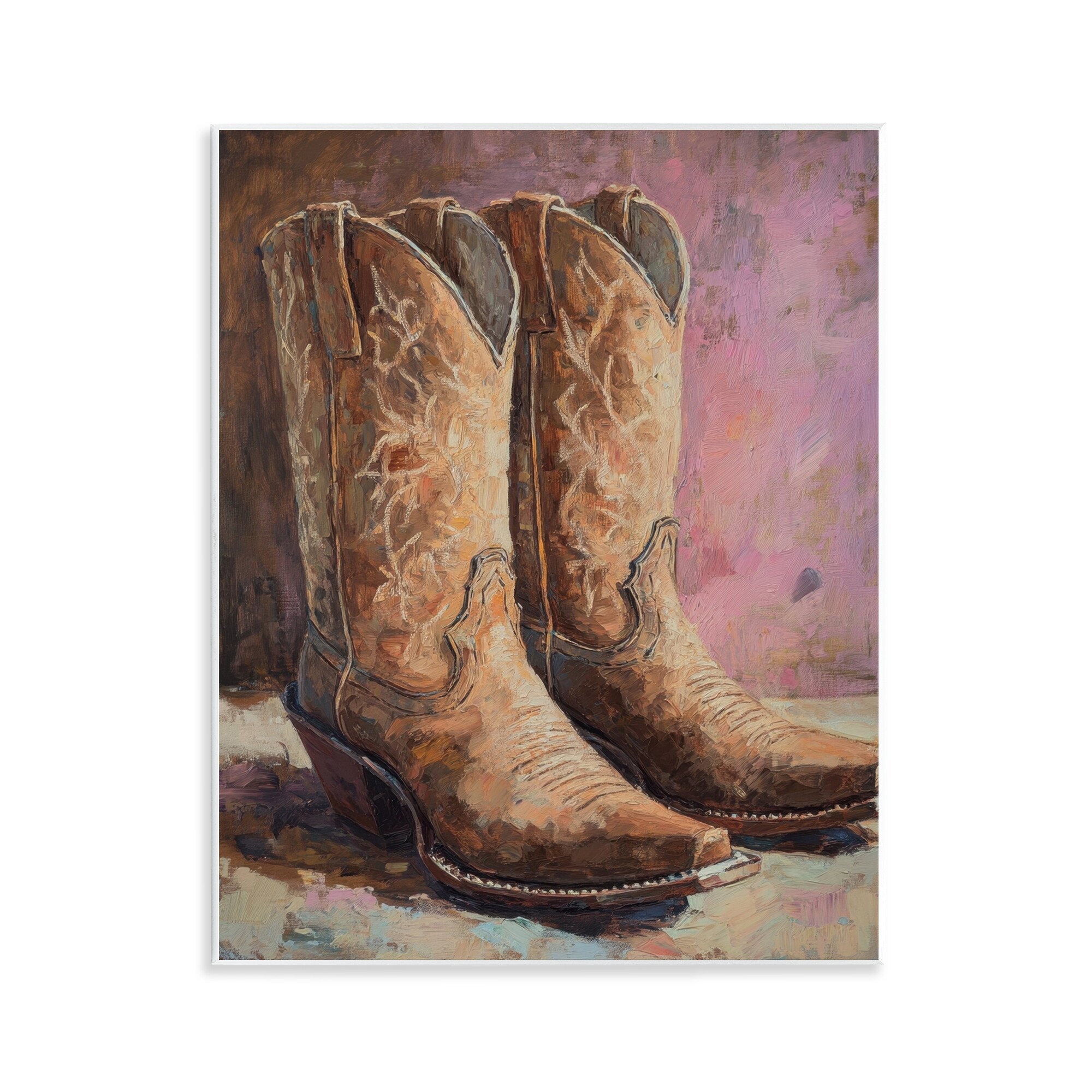 Stupell Distressed Brown Cowboy Boots Wall Plaque Design by Petal Prints Design