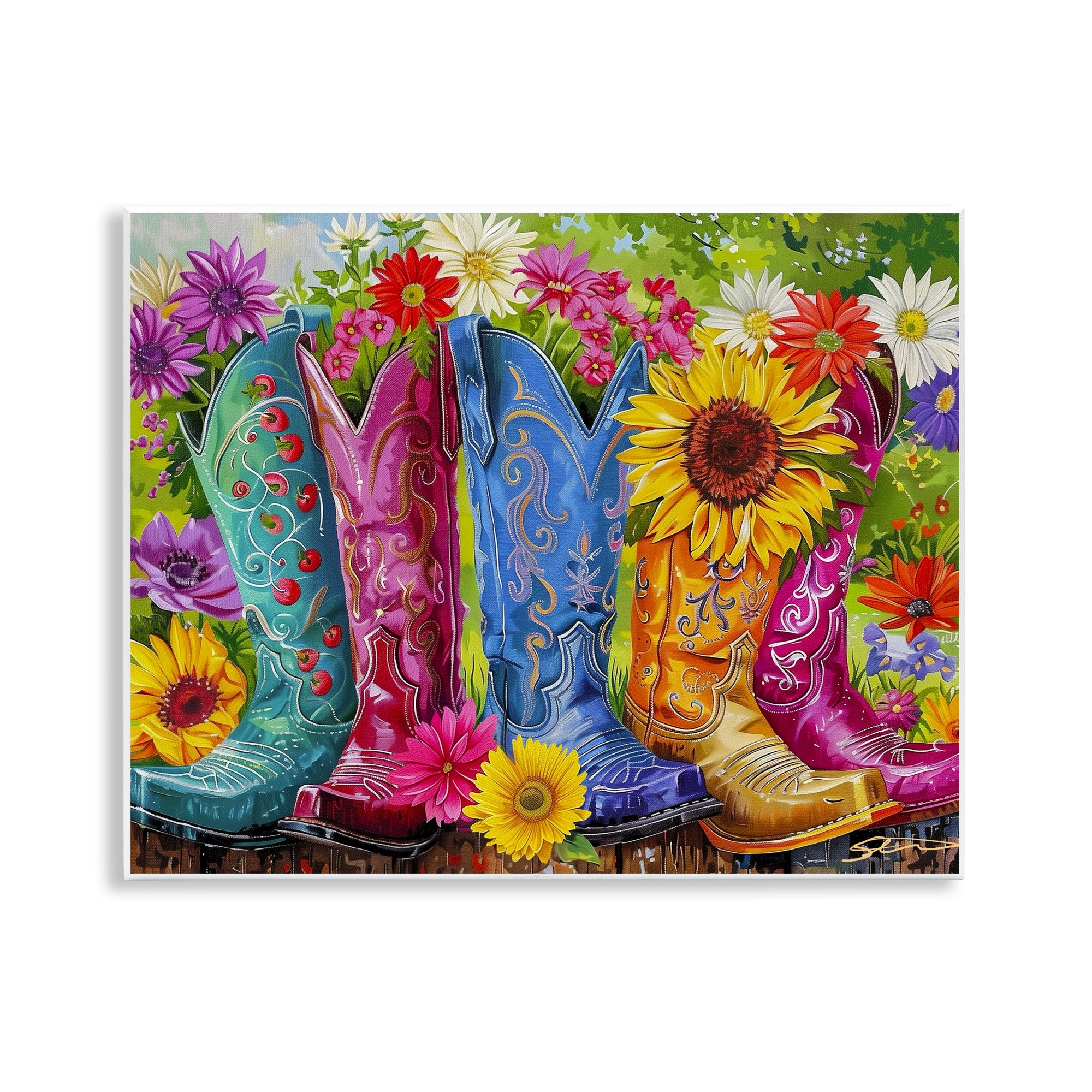 Stupell Cowboy Boots and Sunflowers Wall Plaque Design by Shawna Stewart