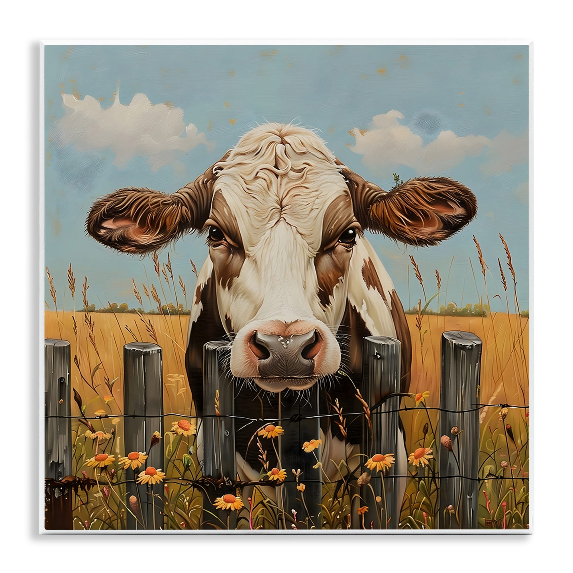 Stupell Cow & Daisies Fence Wall Plaque Art Design By LSR Creative Studio