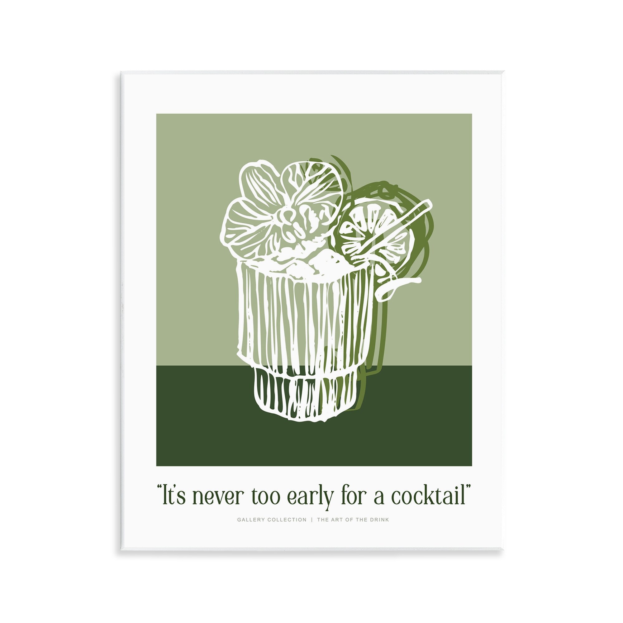 Stupell Green Never Too Early Cocktail Wall Plaque Art Design By Lettered and Lined