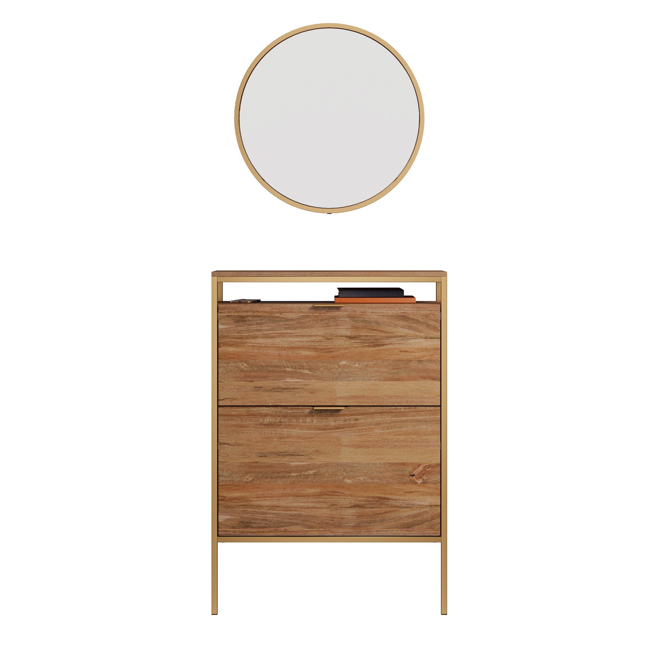 Wood Wall-Mounted Shoe Cabinet with Mirror, Brown - 30.24"W x 10.12"D x 44.02"H